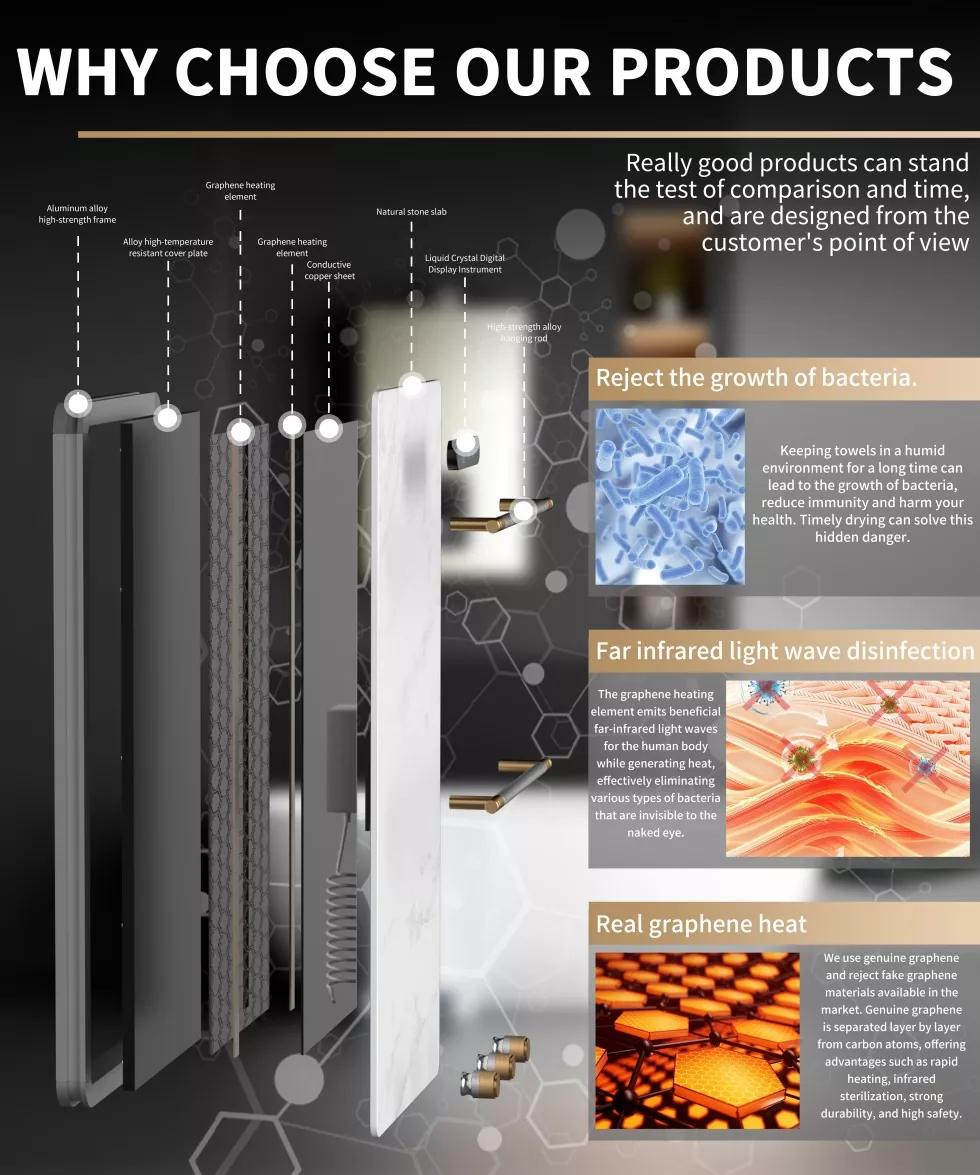 ໃນຖານະເປັນຜູ້ສະຫນອງໃນອຸດສາຫະກໍາ Graphene, Meshow ສືບຕໍ່ຄົ້ນຫາແນວຄວາມຄິດໃຫມ່ໆ. ຜ້າເຊັດໂຕທີ່ມີສີຂີ້ເຖົ່າ graphene ສີດໍານີ້ມີຮູບລັກສະນະທີ່ດີເລີດແລະຮູບແບບທໍາມະຊາດທີ່ຊີ້ໃຫ້ເຫັນຄວາມສະຫງ່າງາມຂອງຫ້ອງນ້ໍາ. ມັນມີຄຸນລັກສະນະຂອງການຕ້ານການຕໍ່ຕ້ານ, ຕ້ານ seeppage, ຄວາມຕ້ານທານອຸນຫະພູມສູງ, ຄວາມຕ້ານທານຄວາມຊຸ່ມ, ແລະການຕໍ່ຕ້ານ. ມັນທົນທານແລະຮັກສາງ່າຍທີ່ຈະຮັກສາ, ສ່ອງແສງເປັນແບບໃຫມ່ດ້ວຍການສໍາພັດດຽວ. ໂດຍມີການສຽບຕໍ່ຕ້ານການຕ້ານການຮົ່ວໄຫຼແລະໃນໄລຍະປ້ອງກັນອຸນຫະພູມ, ການຄວບຄຸມອຸນຫະພູມທີ່ຊັດເຈນເພື່ອປ້ອງກັນການຮົ່ວໄຫຼ, ຮັບປະກັນຄວາມປອດໄພຂອງອຸນຫະພູມສູງ.